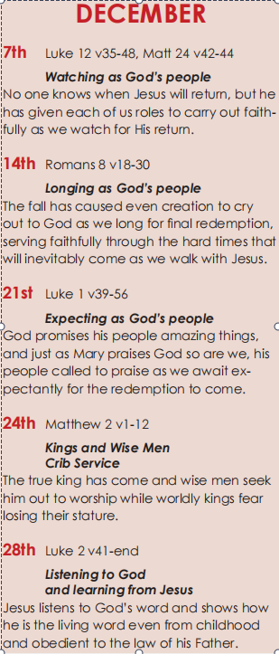 We also meet to pray at 6pm on alternate Sundays. The main aim is to underpin the church ministry with prayer, and these are times of listening to God as much as putting our requests to Him.
